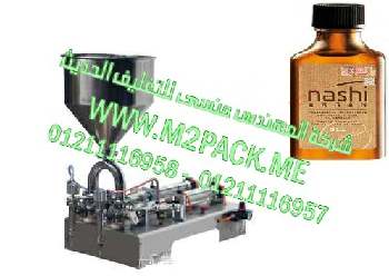 ماكينة تعبئة سوائل مزدوجة الأنابيب لتعبئة زجاجات زيت الشعر موديل إم تو باك 404 ماركة المهندس منسي